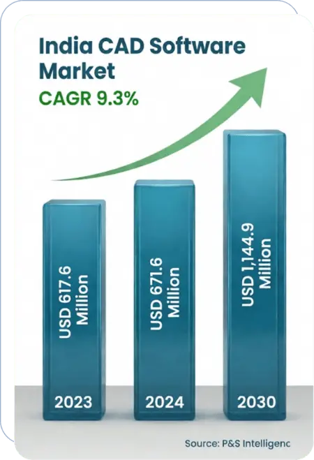 Autodesk holds a significant position in the Indian CAD software market, with Autodesk India Private Limited reporting a revenue of ₹1,890 crore (approx. $225M+) for FY2025, representing a 56% CAGR.